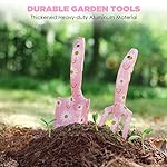 HIGH QUALITY DURABLE MATERIAL: The gardening tools are made of high-quality aluminum alloy, much more durable than other iron-made tools. They are rust-proof, sturdy and easy to clean. Practical hanging holes is easy to storage. Meanwhile the garden gloves provide protection for you. Perfect for planting bulbs, flowers, vegetables