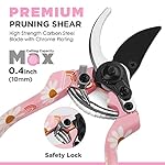 GARDENING SHEAR: With Sharp carbon steel blades, pruning shear can trim 0.4 inch branches, no rust, with safety lock. High carbon steel blades and tips are shiny, rust-proof, extremely sturdy and easy to clean