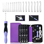 What You Get – The complete lighted crochet hooks set contains 17 size interchangeable hooks, 1 USB cable, 2 wrench, 1 purple compact storage case.