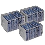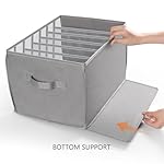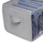Zilink Upgraded Wardrobe Clothes Organizer with Support Board Clear Pants Organizer Bins for Closet with 7 Grids Divider Sweater Organizer for Closet for Jean Pant Sweater Legging T-Shirt, 3 Pack