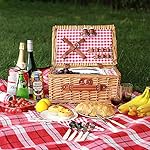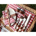 High Quality Material: the natural wicker picnic basket is sturdy to safeguard your picnic contents for years to come. pu handle makes it easy to carry the basket wherever you go. luxury faux leather straps that help to secure the components so that there is no fear of anything moving about as all of the cutlery and utensils are fastened to the basket