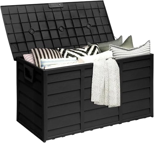 75 Gallon Outdoor Deck Storage Box, Patio Resin Deck Storage Container, Store Cushion and Sundry Things (Black)