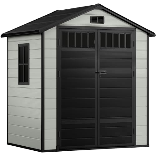 6×4.4FT Outdoor Storage Shed, Resin Shed with Reinforced Floor & Secure Door Lock, All-Weather Outdoor Shed for Gardening Tools, Bicycles, Patio Furniture, Lawn Mower (Gray)